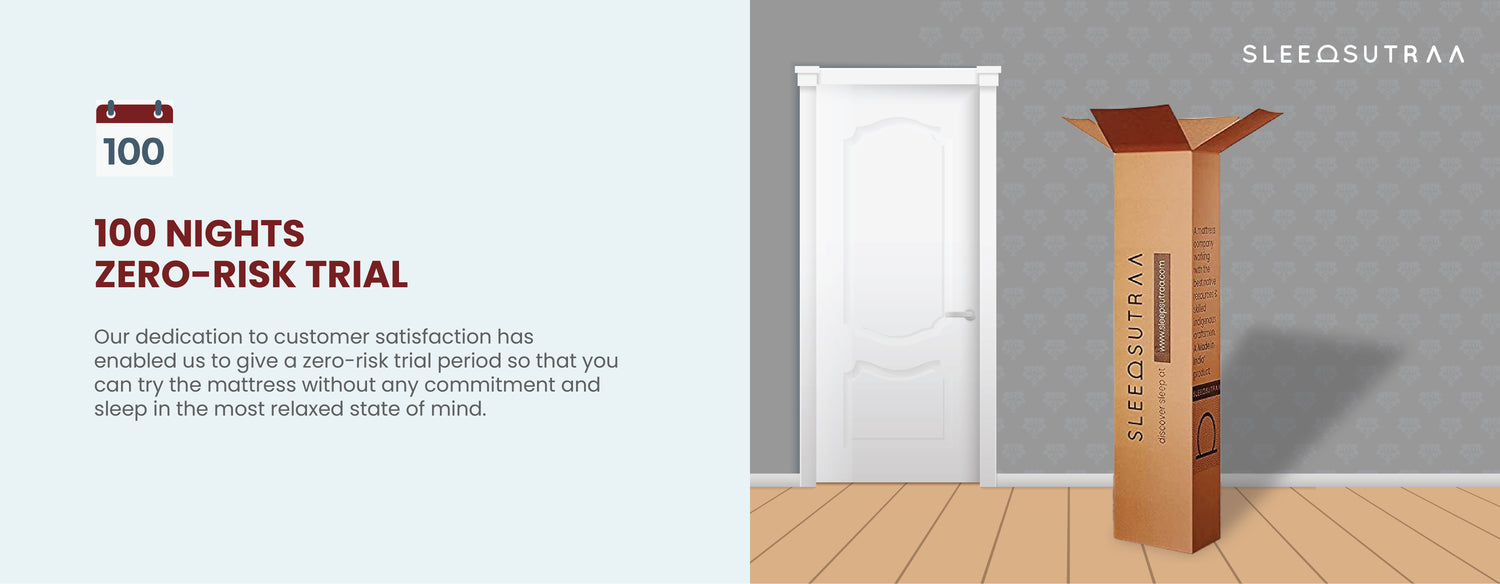 We have paid attention to every ingredient that goes into a Sleepsutraa mattress, understood the physical product and made to suit the extraordinary variety of climate zones in India. Our medium firm and soft reversible dual comfort mattress provides multiple layers of support to help distribute the weight evenly to ensure that your spine is in a healthy alignment. It addresses the needs of most sleepers — especially side and combo sleepers. Get a peaceful night's sleep by having the freedom of better sleep while choosing between soft and firm surfaces.